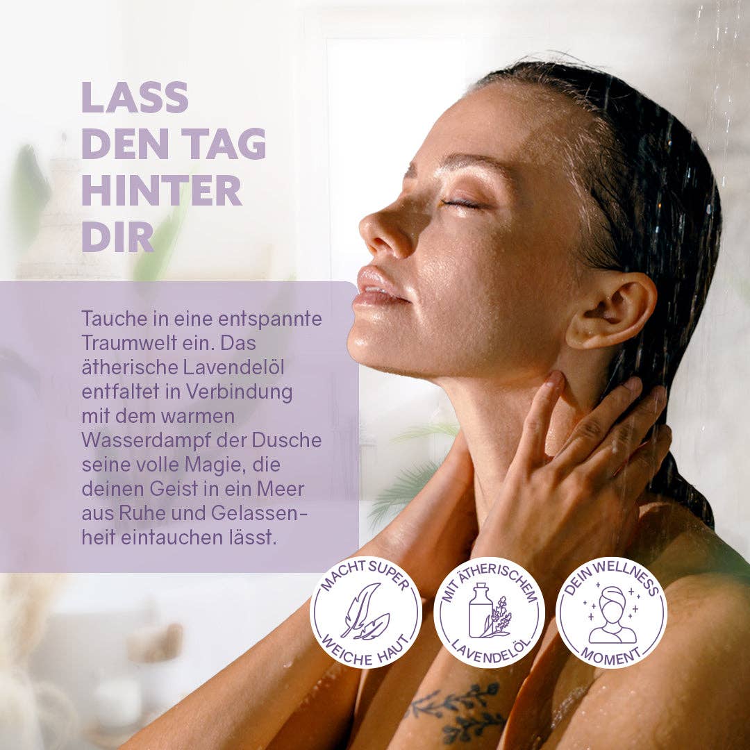 The rising lavender scent gently envelops you and helps release the day's thoughts, while the soothing warmth of the shower brings body and soul to rest. Lavender oil is known for its relaxing